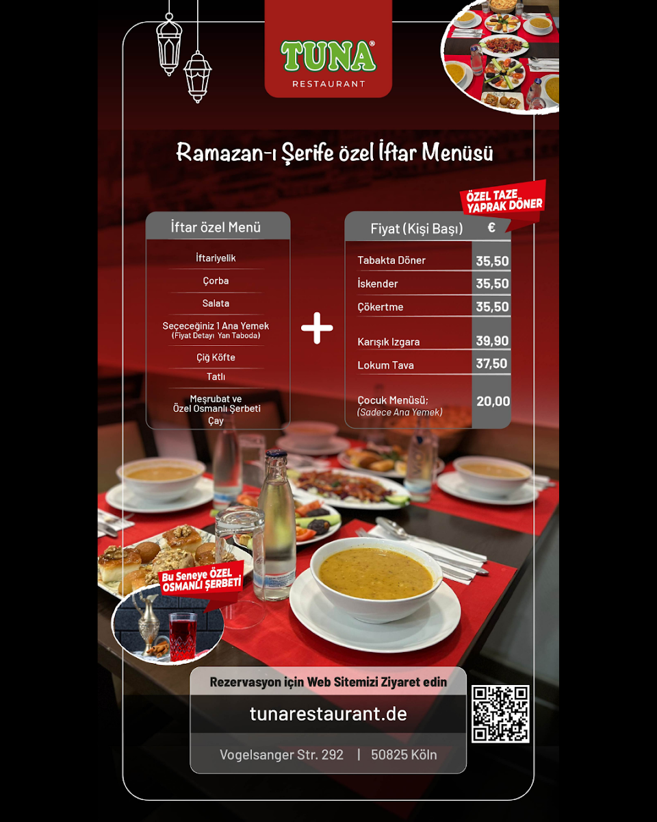 Welcome to Tuna Restaurant, a hidden gem proudly situated on Vogelsanger Str. 292 in Köln, Germany. This culinary haven draws you in with promises of authentic Turkish flavors crafted with passion and expertise. Under the skillful direction of Chef Mehmet Usta, Tuna Restaurant offers a taste experience that exemplifies the heart of Turkish cuisine.